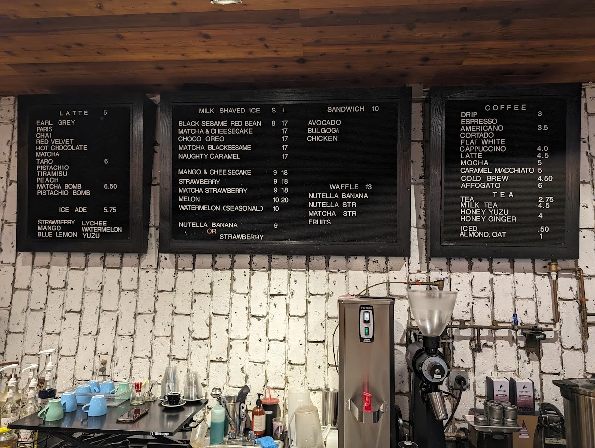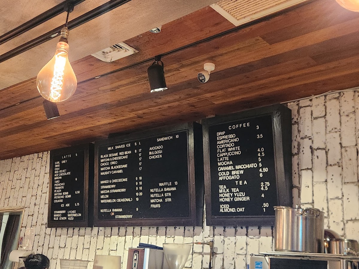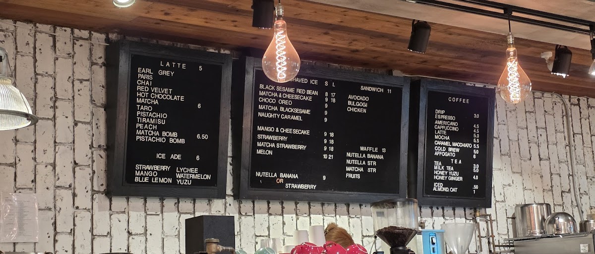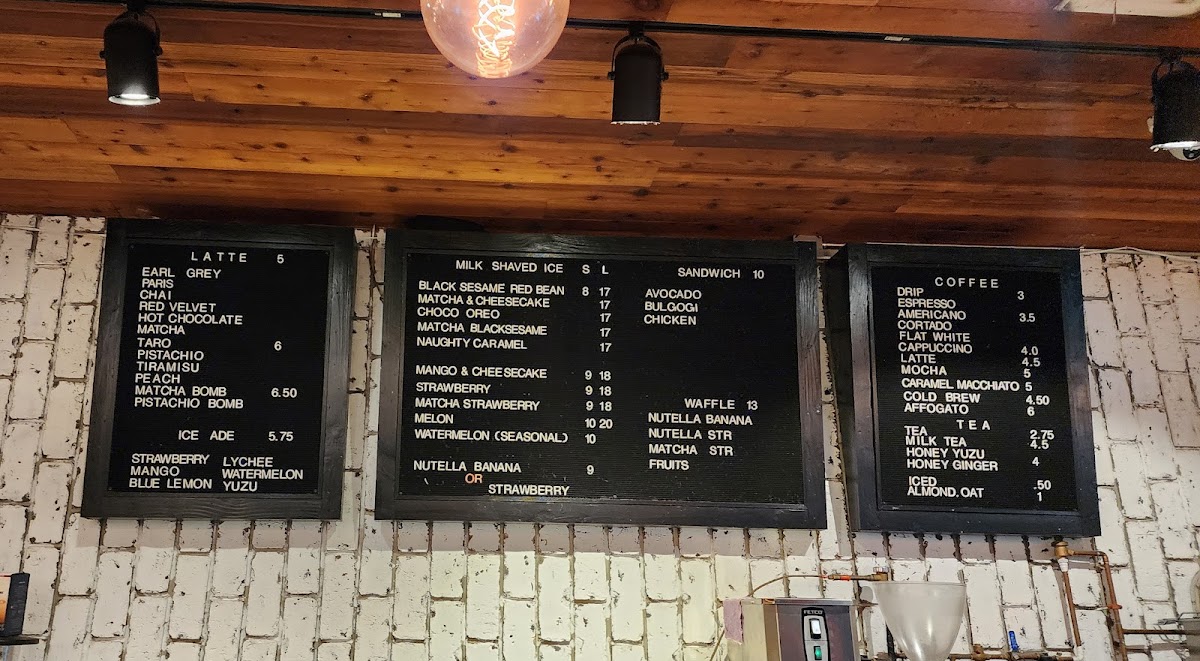 The menu is structured to accommodate customers seeking quick coffee orders, afternoon snacks, or casual light dining with a focus on coffee, dessert items, and complementary bakery goods.